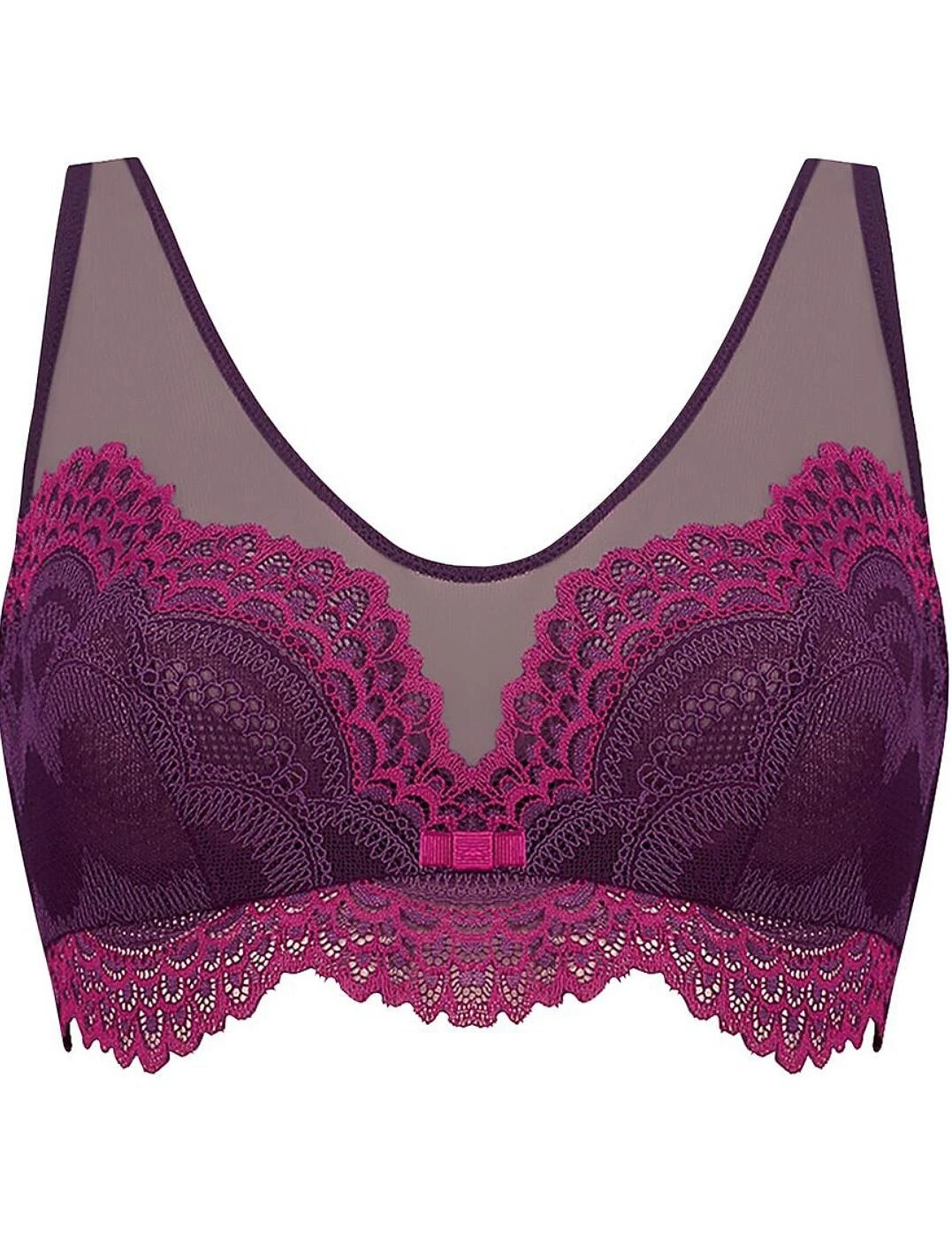 Highlight your curves without compromising comfort. The Beauty-Full Darling collection by Triumph provides just that. Featuring scalloped edges and patterned lace, creating a dramatic yet sensuous look. This fabulous bralette is constructed with side boning and wired cups for excellent fit and support. Elastic underbust is decorated with delicate lace and ensures additional wearing comfort. Decorated with a dainty bow to the centre bust. The straps are crafted from sheer tulle at the front and are adjustable at the rear. Pair this fabulous bra with the matching briefs.