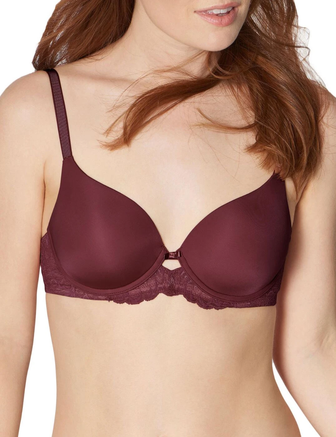 This elegant piece comes to you from the Amourette Charm collection by Triumph. Lace trims the bottom of each cup to create a sophisticated and feminine look, joining in the centre underneath a single silk bow. The lace continues round the back with a comfortable elastic ribbon along the inside. Adjustable straps and a hook and eye closure combine to allow a perfectly flawless fit. Padding in each cup gives the perfect uplift and support, whilst the delicate soft fabric offers optimal comfort.
