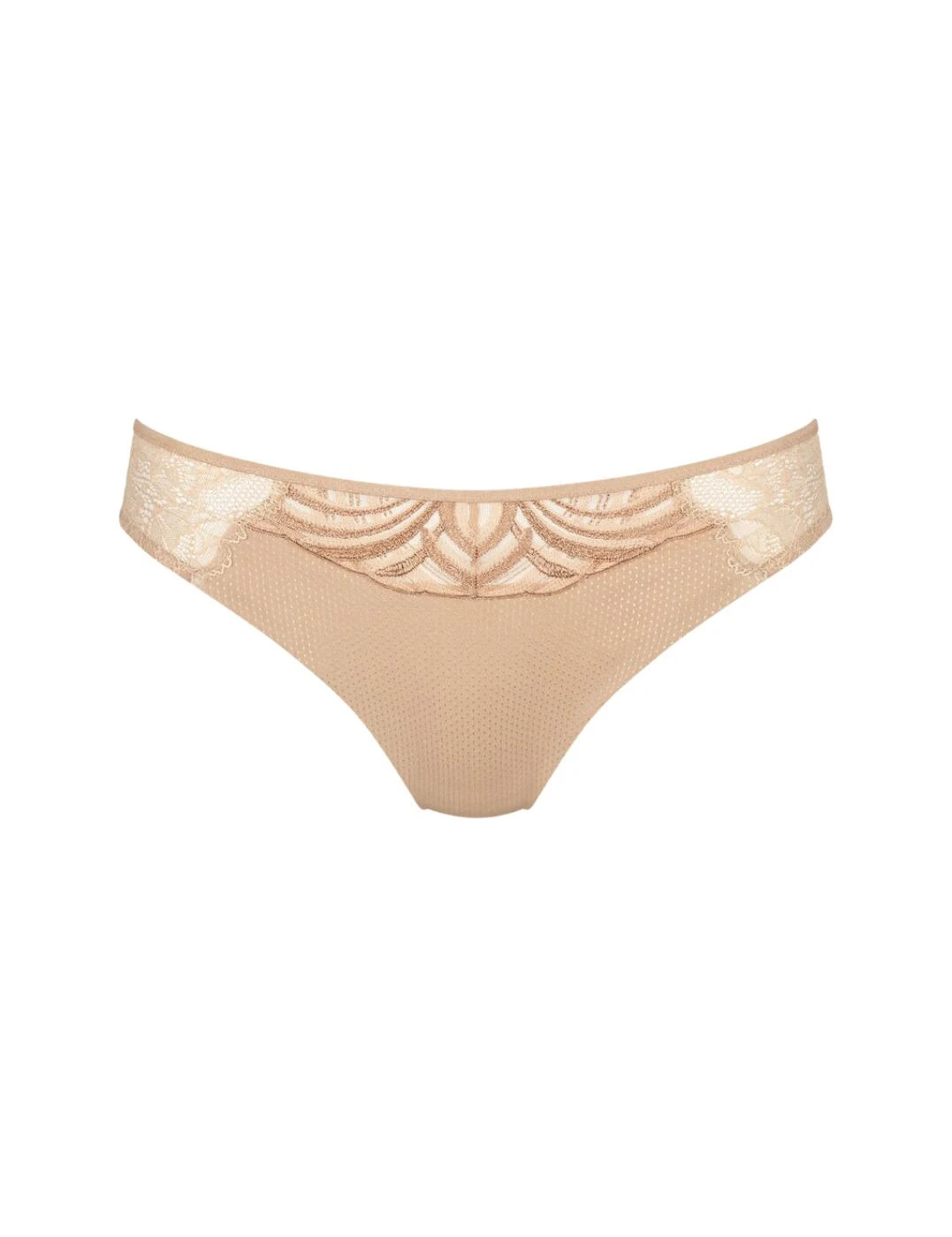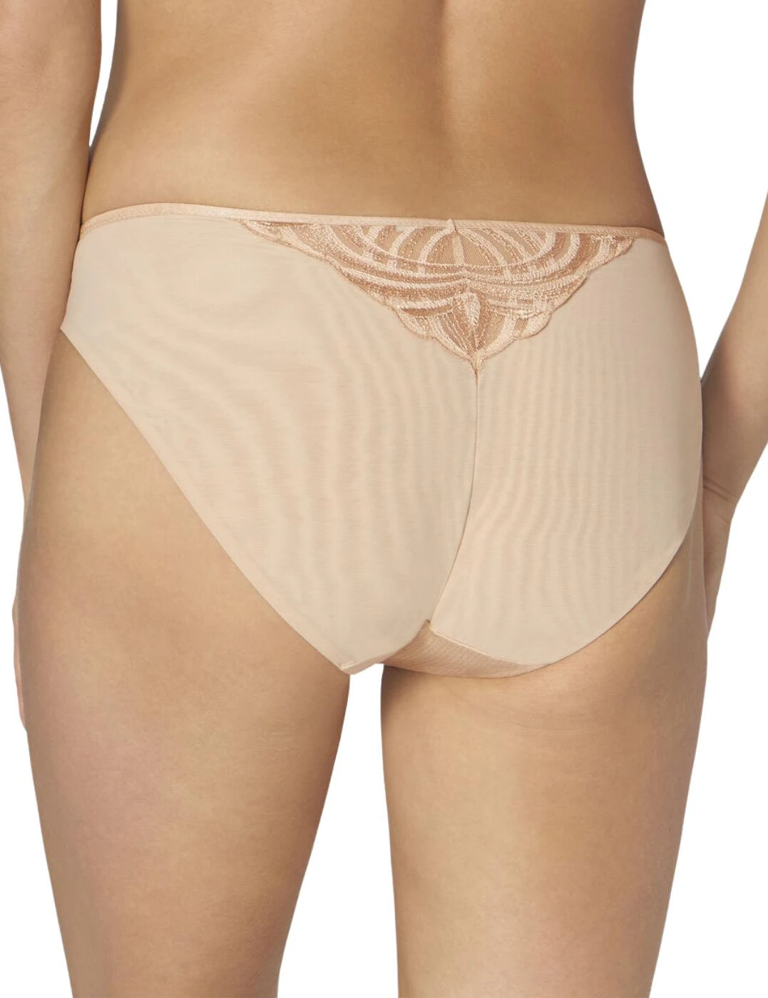 Add some new feminine and delicate lingerie to your collection with this Tai brief by Triumph. From the Lily Florale collection, it features gorgeous shimmery jacquard with fine tulle and lace details. It is a classic style brief with a low rise waist that provides good rear coverage. The waistband is elastic and has a lace trim that leads round to the sides. It is made from a jersey fabric that has soft cotton lining creating a super comfortable fit. The rear also has lace detailing as well as a been double-layered and has a gentle shaping effect.